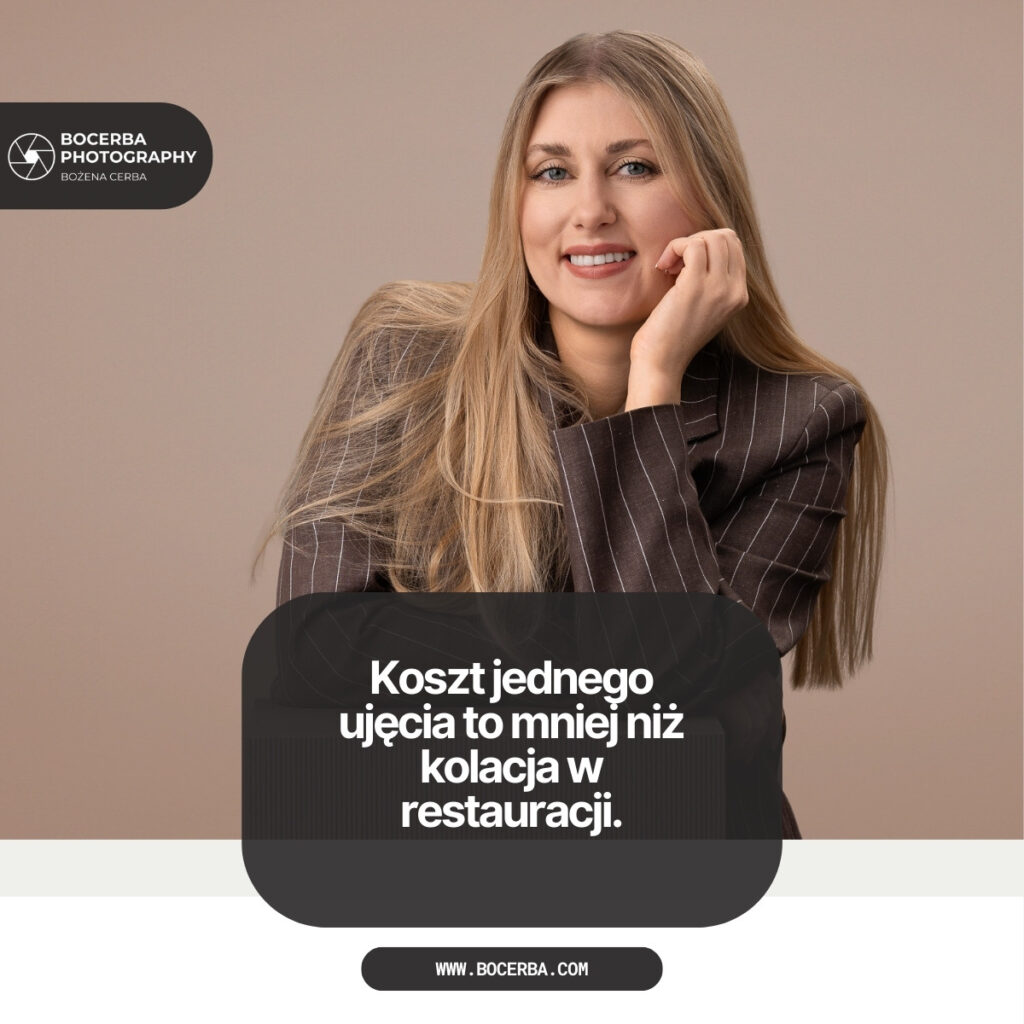 Selfie zrobione telefonem nic nie kosztuje, ale zwykle wygląda amatorsko i zamiast budować zaufanie, może je osłabiać. Sesje próbne niskim kosztem też często kończą się rozczarowaniem – i tak trzeba później zamówić profesjonalne zdjęcia. Finalnie płacisz dwa razy.