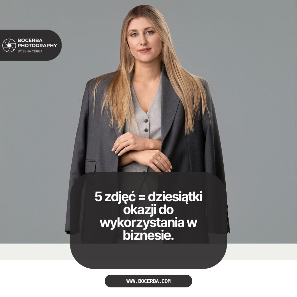 Pakiet 5 zdjęć za 799 zł na pierwszy rzut oka może wydawać się dużym kosztem. Ale jeśli rozbijemy go na części, okazuje się, że to jedna z najbardziej rozsądnych inwestycji w wizerunek. Jedno zdjęcie kosztuje około 160 zł, a dobre ujęcie potrafi pracować na Twoją korzyść miesiącami, a nawet latami.
