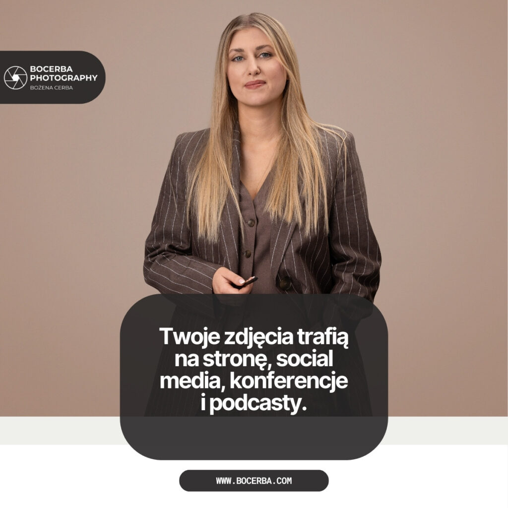 Jeśli prowadzisz własną firmę, Twoje zdjęcia stają się częścią marki. Moi klienci używają ich nie tylko w podstawowych miejscach, ale też w grafikach konferencji, w podcastach, do których są zapraszani, czy w zapowiedziach wydarzeń branżowych. Zdarza się, że to samo zdjęcie pojawia się kilkanaście, a nawet kilkadziesiąt razy w materiałach różnych eventów. Efekt? Rosnąca rozpoznawalność i spójny, profesjonalny wizerunek.